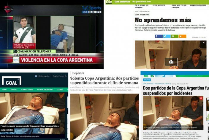 Ahora en @Sportia hablamos con Rodrigo Carcamo, jugador de #NewberyDeCR agredido con un botellazo en #CopaArgentina. Poné @TyCSports pic.twitter.com/x3se0K9pMD
