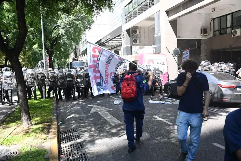 Este miércoles, poco antes del mediodía, se registraron incidentes en la puerta de la Secretaría de Trabajo a raíz de una protesta por los despidos y el cierre de la fábrica de neumáticos Fate, que dejó en la calle a casi 1.000 personas.
