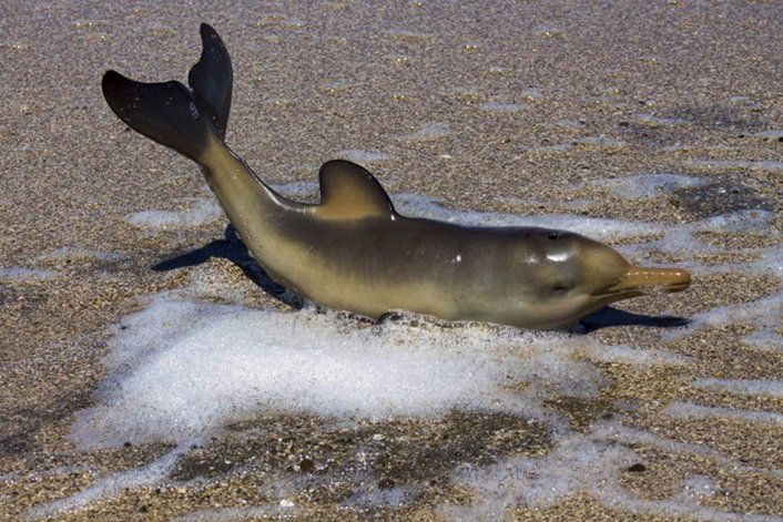 El pequeño cetáceo, de la variedad franciscana, de apenas 61 centímetros de largo y con el cordón umbilical todavía sujeto a su cuerpo, fue encontrado el sábado pasado cerca del mediodía por personas que practicaban aerobismo en ese sector de la playa, en el balneario El Cóndor, a 30 kilómetros de Viedma.
