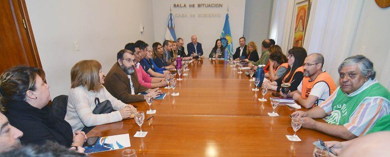 Autoridades del Poder Ejecutivo provincial, encabezadas por la ministra de Gobierno, Mariana Vega, y el ministro de Salud, Adrián Pizzi, se reunieron ayer en la Sala de Situación de Casa de Gobierno, en Rawson, con referentes de los gremios de Salud para acordar una nueva paritaria.