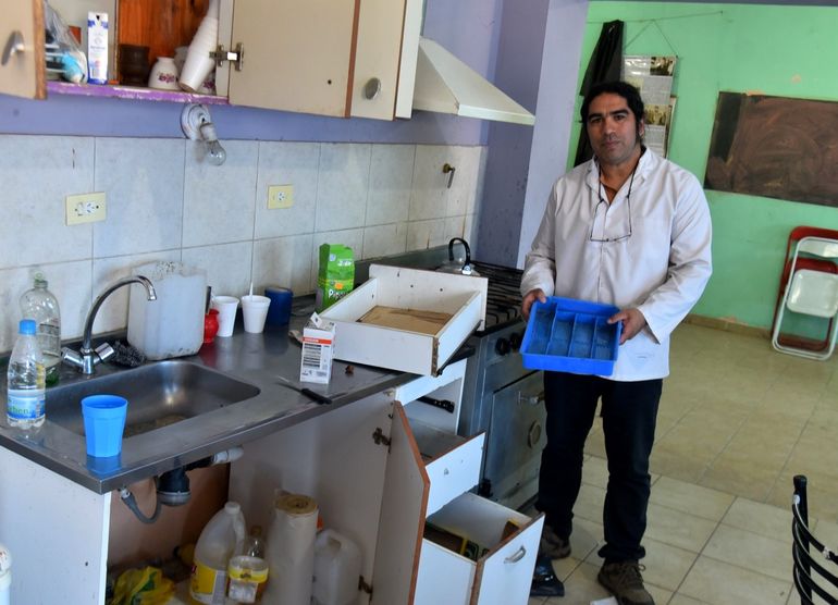 Se llevaron al menos diez sillas de estructura metálica, aproximadamente dos docenas de platos, tazas, vasos, la totalidad los cubiertos (cuchillos, tenedores y cucharas) además de dos pavas eléctricas, dejando un gran desorden en estanterías.