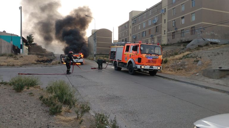 El personal policial y los bomberos voluntarios intervinieron a las 6:50 de este miércoles en el incendio del Chevrolet Onix, que apareció envuelto en llamas en las calles Laferrere y Segundo Sombra, frente a los edificios de las 232 Viviendas.