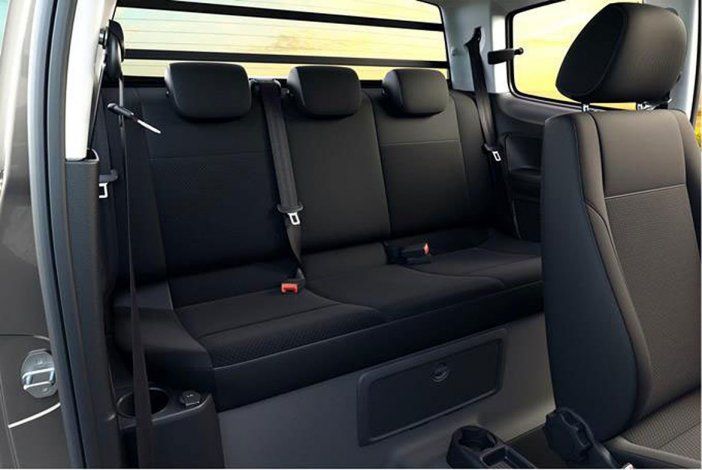 Destinada al trabajo, la Saveiro Robust doble cabina cuenta con una estética simple compuesta por paragolpes delantero y trasero, espejos y manijas de color negro, además de incluir llantas de acero de 15 pulgadas con embellecedores de plástico.