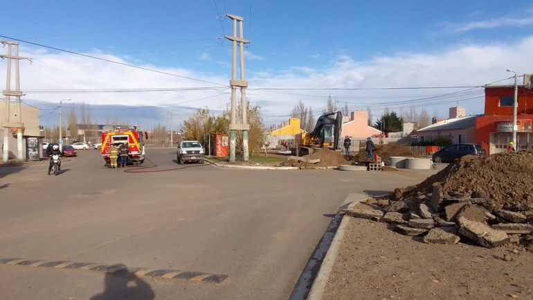 Al parecer, uno de los trabajadores golpeó con la pala de la retroexcavadora el caño troncal de gas y lo pinchó. Por esa razón, se produjo la importante pérdida de gas que motivó la participación del personal de Defensa Civil; de la empresa Camuzzi; de la Sociedad Cooperativa Popular Limitada (SCPL) y de inspectores de Tránsito.
