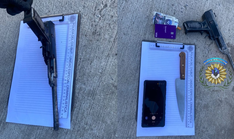 Los uniformados arribaron al lugar y se encontraron con un hombre de características similares a las aportadas por los testigos. Al percatarse de la presencia policial, el individuo arrojó al suelo un arma de fuego de fabricación casera y un arma blanca.