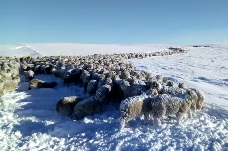 Las intensas capas de nieve han cubierto completamente el suelo, por lo que esto ha dificultado las tareas de los productores agropecuarios.