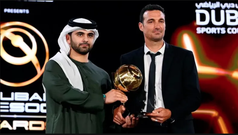 Lionel Scaloni, director técnico campeón del mundo con la Selección Argentina de fútbol en el Mundial de Qatar 2022, recibió el premio a la trayectoria de entrenador en los Dubai Globe Soccer Awards.