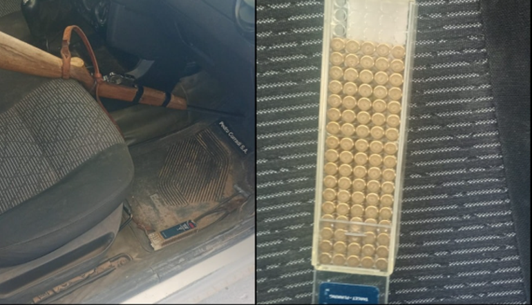 Durante la intervención, los uniformados detectaron a simple vista un arma de fuego tipo carabina ubicada entre los dos ocupantes, al alcance de ambos. De inmediato se solicitó colaboración policial y se adoptaron las medidas de seguridad correspondientes.