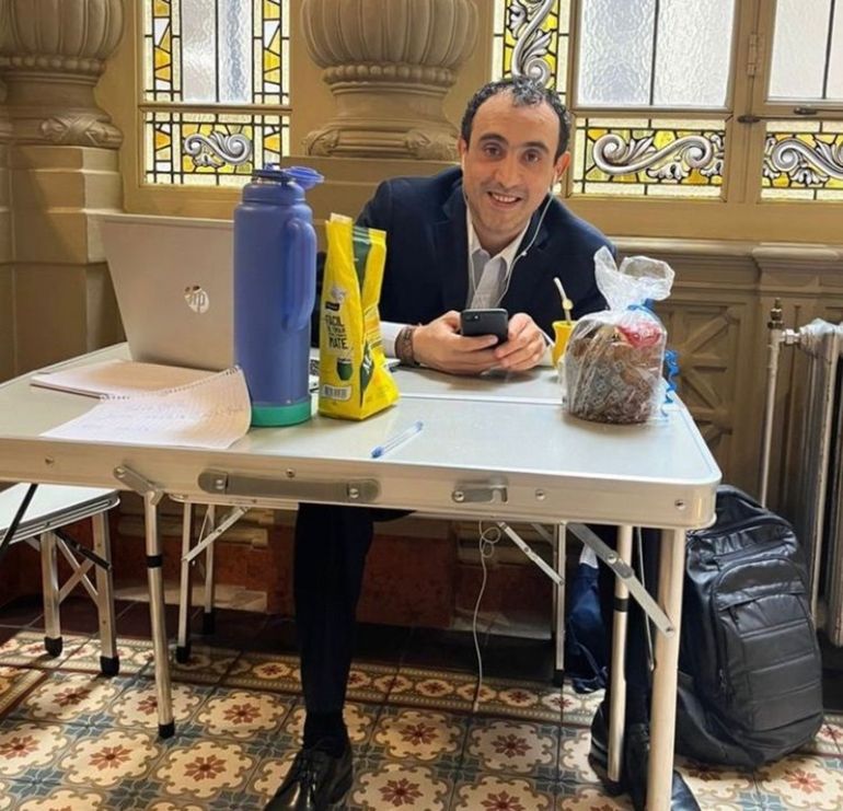 En medio del usual caos que representa el inicio de una gestión de distinto color político y las disputas por lugares codiciados en el Senado, el legislador santacruceño José María Carambia -responde al partido provincial del gobernador, Claudio Vidal- no consiguió despacho y encontró una solución provisoria: instalarse en el pasillo del primer piso del Palacio, a metros de las oficinas de la presidenta de la Cámara alta, Victoria Villarruel.