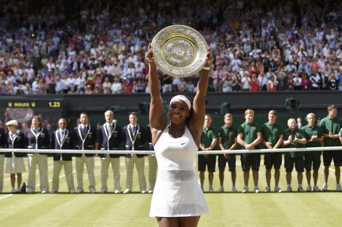 Serena Williams venció hoy con un juego errático y desconcertante 6-4 y 6-4 a la española Garbiñe Muguruza para reinar una vez más sobre el césped del All England Club y marcar nuevos hitos en el tenis.