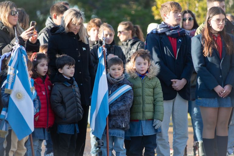 Participaron con sus banderas las escuelas de la ciudad portadas por sus abanderados, como también la Comisaría del Distrito Rada Tilly, la Asociación de Bomberos Voluntarios, del Grupo Scout Cristo Rey y el Centro de Jubilados y Pensionados de Rada Tilly.