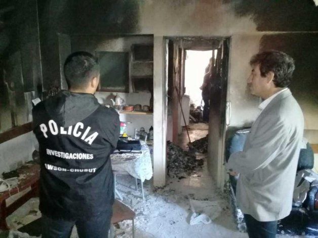 Peritos de la Policía Federal Argentina realizaron en Rawson una pericia en el departamento en el que de manera intencional un hombre prendió fuego el lugar donde se hallaba su pareja provocando además de importantes daños, la muerte de una vecina del lugar.