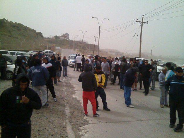Esta tarde alrededor de las 18 horas cuando las ráfagas corrían con una intensidad de 115 km en la hora, unos doscientos trabajadores de Guiford se concentraron en el acceso de la playa de tanques de Km 3 para definir los pasos a seguir después de una tarde sin tener comunicación con el empresario y propietario de la empresa textil Matías Goransky.