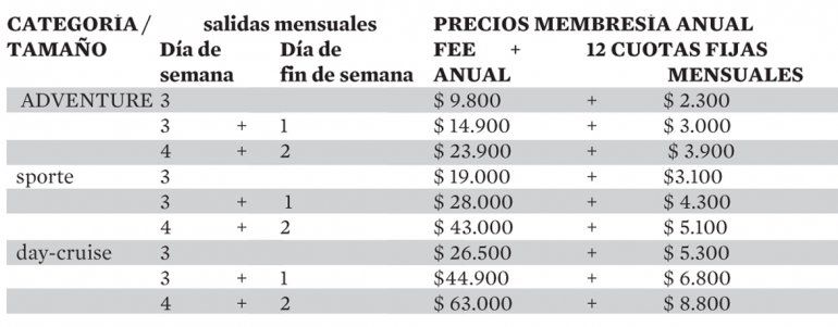Boatshare ofrece planes de 3 a 6 salidas mensuales en determinados días (ver recuadro). Según explican los socios del emprendimiento, “el costo promedio real de cada salida en una embarcación propia es superior a $5.000 e incluye guardería, mantenimiento, ARBA, seguro, services, matrícula y bienes personales, esto sin contar la depreciación del bien que se paga con pérdida de dinero”, relatan y agregan: “Con BoatShare, el costo se reduce un 75%, sin la necesidad de inmovilizar capital”.