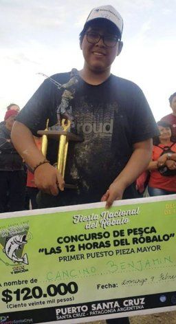 Se trata de Benjamín Cancino, de solo 15 años y que se hizo acreedor a una suma de 120 mil pesos por obtener la pieza da mayor tamaño que pesó 5,248 kg.