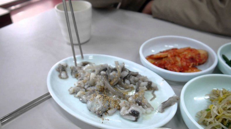 Es coreano y consta de pequeños pulpos bebé vivos que se cortan en pequeños trozos, se condimenta con aceite de sésamo e inmediatamente se sirve. Al momento de ser emplatado y degustado, los trozos de pulpo aún se mueven.