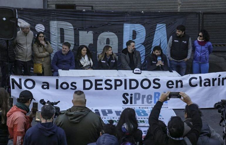 La conferencia convocada por el Sindicato de Prensa de Buenos Aires (SiPreBA) se llevó a cabo a las 9, en la calle Tacuarí al 1800, frente a la redacción de Clarín, y el sindicato adelantó que se realizarán asambleas en las redacciones en consonancia con una jornada impulsada por Fatpren.