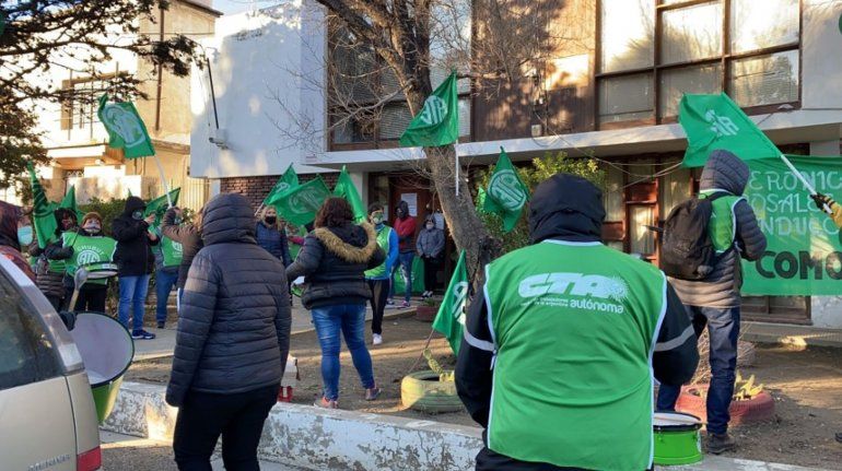 Este jueves a la mañana un grupo de trabajadores de la educación realizó un reclamo en el edificio de Supervisión de Escuelas en km 3. Allí también entregaron un petitorio.