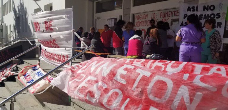 “Los trabajadores hemos llevado las medidas de fuerza y el tiempo ha demostrado que las negociaciones no han llevado a nada”, consideró Navarro poniendo en valor el bloqueo de las puertas de acceso al Hospital Regional y la movilización en la avenida Yrigoyen que realizaron ayer para continuar protestando contra el pago escalonado.
