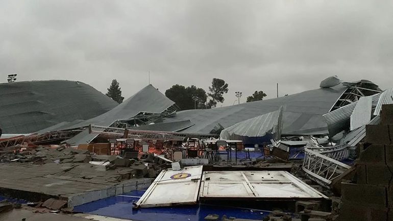 Los vientos arrancaron por completo el techo de los quinchos, también derribaron un paredón, voltearon arquerías y causaron daños en las redes que rodean las canchas.