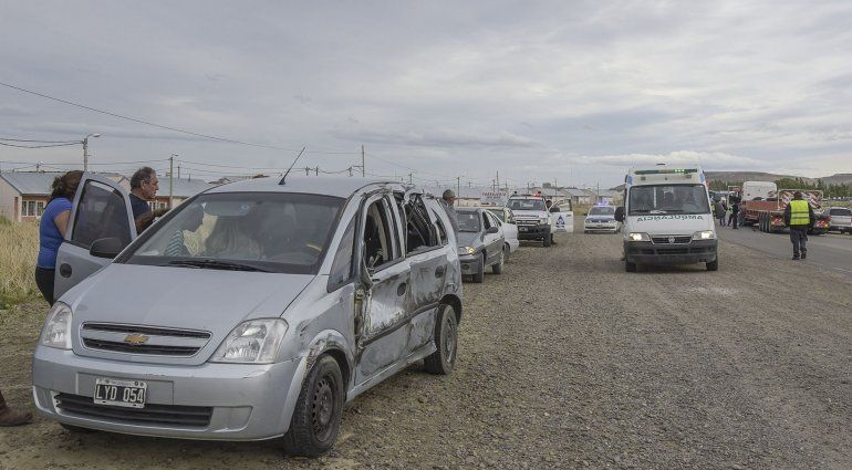 Así, la parte superior del vehículo menor chocó contra el carretón para después colisionar contra la dual del tractor del camión, generando que toda la parte izquierda de la carrocería de la Meriva quedara destruida. Los vidrios y partes de las puertas quedaron esparcidos en la calzada.