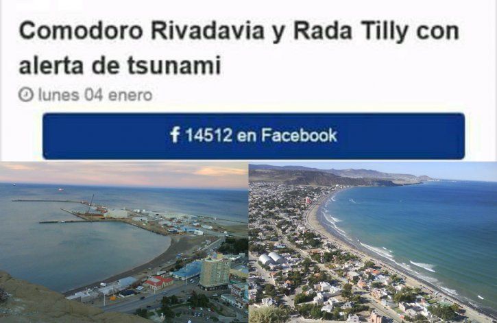 En la tarde de ayer se viralizó en redes sociales, principalmente en Facebook, la información acerca del alerta de Tsunami para Comodoro Rivadavia y Rada Tilly. Los usuarios más inocentes y poco atentos -ante el miedo- comenzaron a compartir la publicación.