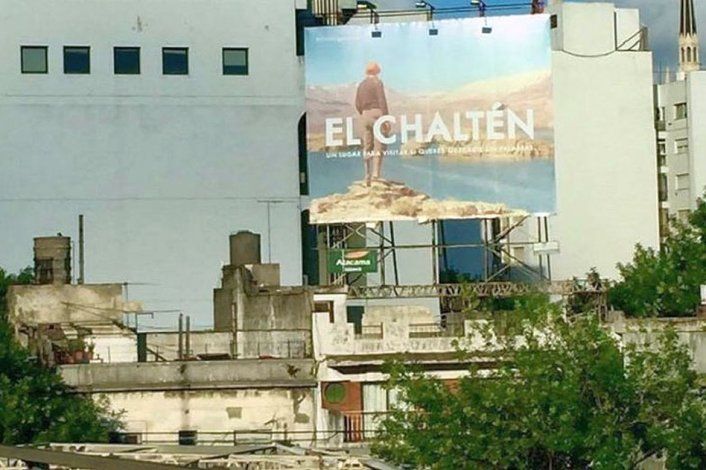 La imagen típica de promoción de Lago Posada un arco de piedra que emerge del espejo de agua cruzada por el nombre de El Chaltén y la frase: "Un lugar para quedarse sin palabras" puede verse en una serie de grandes carteles como parte de una campaña a nivel nacional, por lo que se los verá a lo largo de todo el país.
