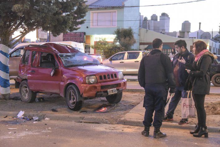 Numerosas personas que caminaban por las veredas de la avenida Kennedy al 2100 fueron ayer espectadores de un choque seguido de vuelco. Dos autos estacionados contuvieron la descontrolada carrera de la Suzuki Jimny que protagonizó el accidente.