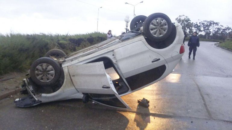 Mientras, sobre las 8:30 en la salida de la curva del "Chalet Huergo", en el sentido sur-norte de la ruta Nacional 3, volcó una pareja que viajaba en un Volkswagen Gol Trend, patente MNH 145. Ambos sufrieron traumatismos.