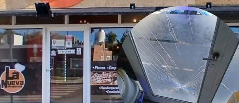 El hecho se registró minutos después de las 11:00, a partir de un llamado de urgencia realizado por la dueña de “La Nueva Despensa”. Al arribar, el personal policial constató que la vidriera del comercio presentaba importantes daños.
