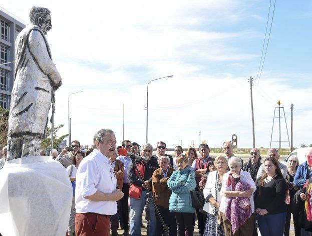 En la plazoleta que se encuentra en diagonal a la calle Democracia y previo al ingreso a la avenida Ducós, se realizó una sencilla ceremonia y Alfonsín acompañado por Orlando Vera, vicepresidente del Comité Provincial de la UCR, colocó una ofrenda floral en el monumento.