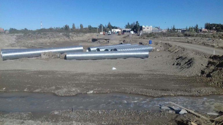Mientras las máquinas viales continuaban nivelando otro sector del lugar en donde según se comentó se colocará el puente Bailey perteneciente al Batallón de Ingenieros 9 de Río Mayo, mientras se comienza la obra de un nuevo puente de concreto.