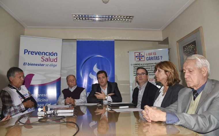 El encuentro fue encabezado por el vicepresidente de la compañía, Vicente Pili, quien estuvo acompañado por Miguel Carruozoo, gerente zonal; Vanacloy; Elida Eylenstein, a cargo momentáneamente de las oficinas locales; y el director de Caritas, Franco Avalos, entre otros integrantes de esa ONG.