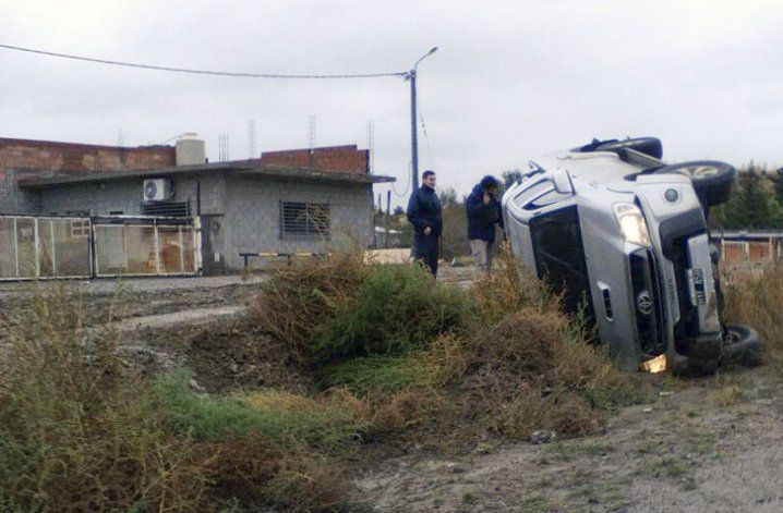 Una Toyota Hilux, dominio HYF 458, volcó ayer al mediodía en la extensión del barrio San Cayetano cuando su conductora circulaba por una de las calles anegadas por el agua y el barro a causa de la copiosa lluvia que cayó sobre Comodoro Rivadavia.