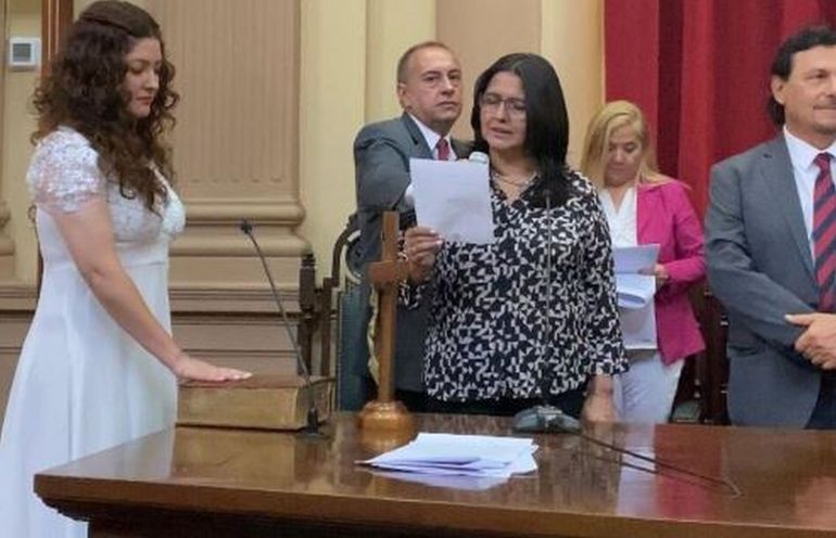 El viernes se realizó la jura de los nuevos diputados provinciales en Salta y, en ese contexto, se suscitó un hecho insólito: una diputada de La Libertad Avanza (LLA) juró su nuevo cargo vestida de novia y afirmó: “Me caso con la gente”.