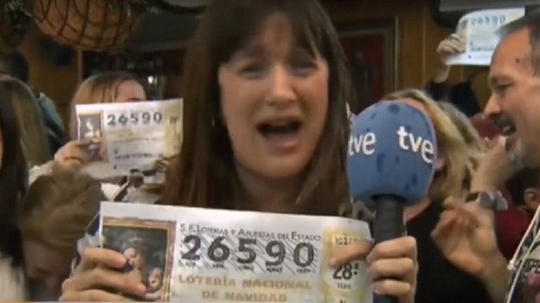 Una periodista hacía un móvil para la cadena española RTVE por el comienzo del sorteo de lotería El Gordo de Navidad, pero la que se convirtió en noticia fue ella cuando la cámara tomó en vivo su reacción al enterarse que su número era el ganador.