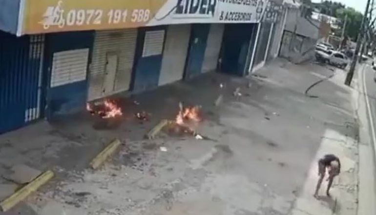 Una mujer roció a su pareja con alcohol y le prendió fuego en plena calle de la ciudad de Asunción, en Paraguay. El ataque ocurrió en medio de una discusión y quedó registrado por una cámara de seguridad.