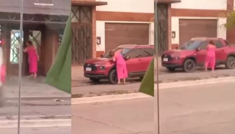 Mientras el hombre se encontraba en su puesto de trabajo, la agresora, Ana Rosmeri Peñalo, se mostraba alterada, a plena luz del día, descalza, rodeó una camioneta roja con un martillo en la mano, intentó causar daño de varias maneras y ante la falta de resultados, golpeó directamente sobre el vidrio del parabrisas donde logró varias abolladuras.