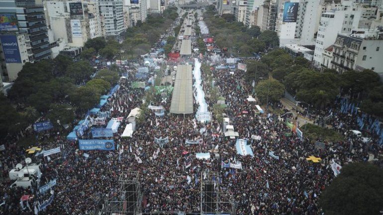 Militantes y autoconvocados vencieron al frío y coparon la 9 de Julio desde el mediodía para expresarse en contra del acuerdo que el Gobierno firmó con el Fondo Monetario Internacional, pero también en repudio de las “políticas de ajuste” implementadas por el Ejecutivo desde que asumió la presidencia Mauricio Macri. Con y sin carteles; con y sin banderas, hombres y mujeres celebraron el Día de la Independencia en la calle.