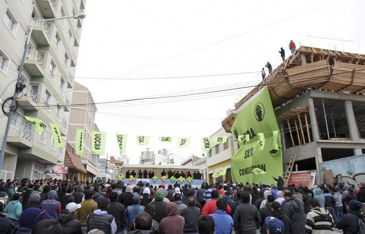 Más de 300 personas acompañaron ayer el festejo por el Día del Trabajador de la Construcción que realizó UOCRA en la calle Rawson, frente al edificio de la obra social que se encuentra en etapa de construcción con un 50% de avance.