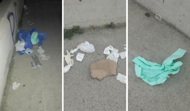 En la tarde de ayer se abrió un nuevo capítulo cuando una vecina fue a caminar por el paseo costero a la altura de calle "Tiburón", dónde se encontró con la desagradable imagen de gasas con sangre, guantes de látex usados y diversos elementos hospitalarios esparcidos por el lugar.