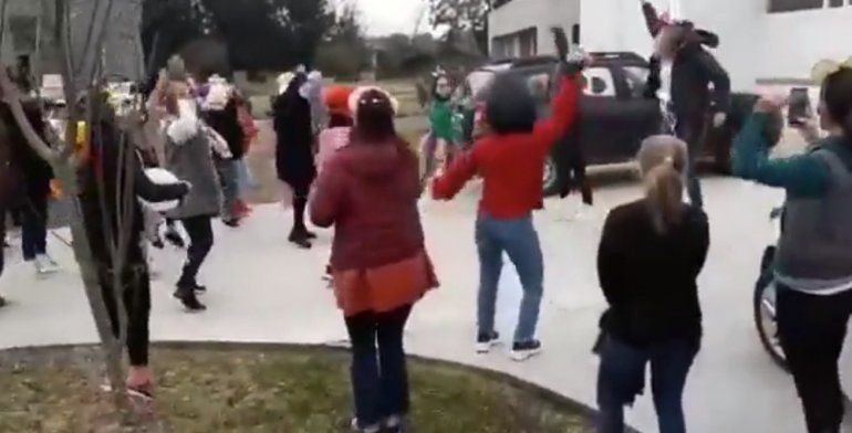 Según detallaron, la escena se repitió frente a varias casas, ya que el grupo se fue trasladando de una casa a otra para celebrar los aniversarios de varias mujeres que cumplieron 40 años en los últimos días.