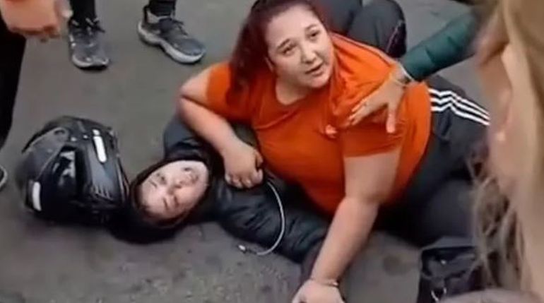 Una violenta pelea se produjo en la intersección de 12 y 58 en La Plata, y parte del enfrentamiento quedó registrado en video: una joven motociclista fue reducida sobre el asfalto por una mujer de mayor envergadura física.