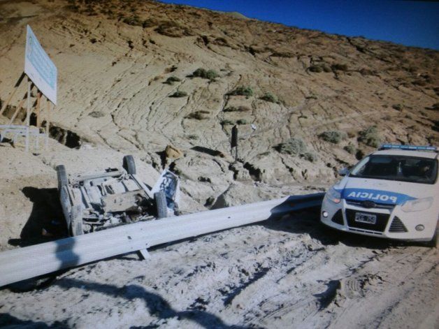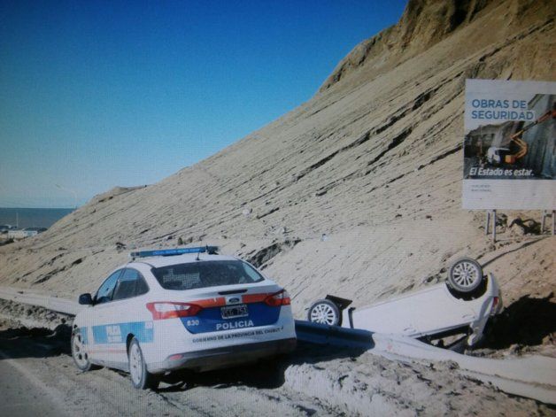 Según pudo averiguar El Patagónico este lunes a las 23.20 horas, se produjo en un accidente de tránsito en el acceso norte de la Ruta Nacional 3, en la ladera del cerro Chenque, donde un vehículo Toyota Etios, dominio NPR 349, quedó con sus cuatro ruedas hacia arriba.
