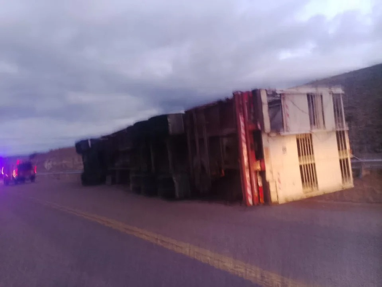 Un camión que transportaba hacienda vacuna volcó el viernes por la noche sobre la Ruta Nacional 25, a unos 25 kilómetros de Tecka en dirección a Paso de Indios. El siniestro ocurrió entre los kilómetros 504 y 505, alrededor de las 20:45 horas.