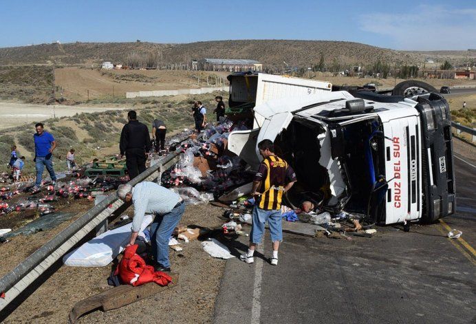 Gran parte del cargamento quedó esparcido en la ladera de un terraplén, algo que fue aprovechado por automovilistas que se ocuparon de recolectar y llevarse gratuitamente las botellas plásticas que quedaron intactas.