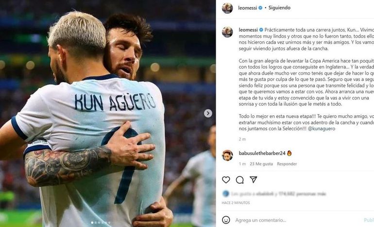 Uno de los primeros mensajes de apoyo y acompañamiento para con Sergio “Kun” Agüero fue el de su amigo y ex compañero en la selección argentina Lionel Messi.