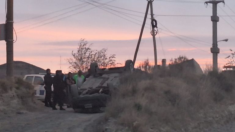 Un automóvil volcó esta mañana sobre la avenida 10 de Noviembre, a la altura de las inmediaciones de la Policía Montada, en Comodoro Rivadavia.