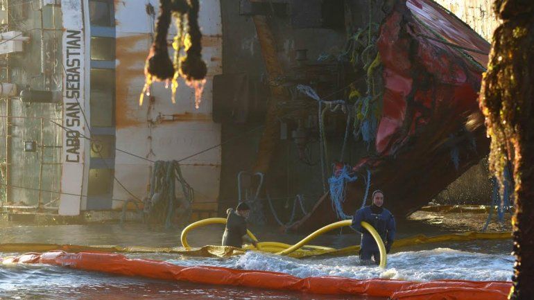 En cuanto a la tarea, el ministro indicó que "lo más importante" hasta aquí "fue el retiro de los líquidos del interior del Cabo San Sebastián, para que no siga aportando" hidrocarburos al espejo de agua, "y ahora haber comenzado a extraer lo que le queda a los demás buques, el 'Cabo Buena Esperanza', 'Cabo Dos Bahías' y el 'Promarsa II'", agregó Musmeci.